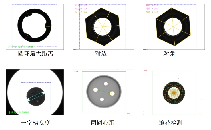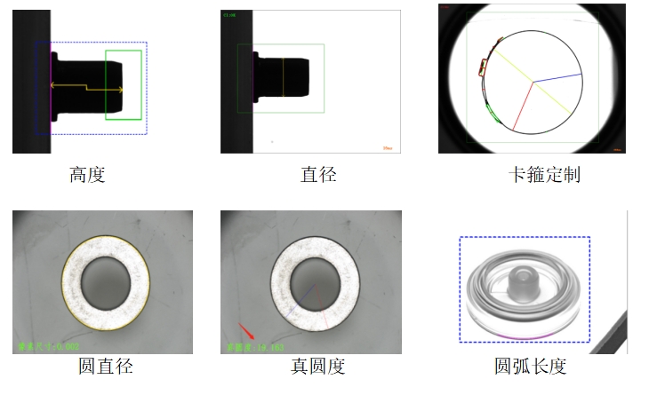 2.尺寸檢測:檢測圓尺寸大小、零件高度、長度、任意兩端距離,間距、平整度,