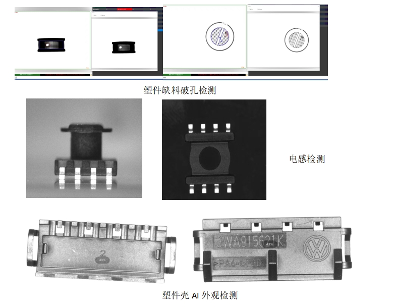 1.外觀檢測:檢測產品表面裂痕、劃傷、缺口,檢測連接器參數,計算連接器的端子間距、平整度,檢測缺陷等